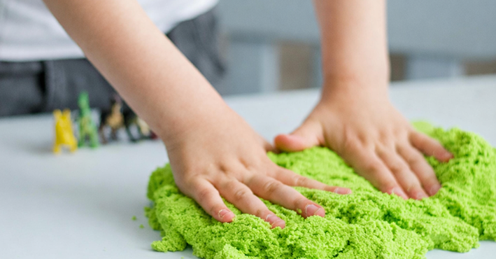Het gaat hierbij niet om regulier speelzand uit zandbakken, maar om vaak gekleurde zandproducten en magisch zand.
